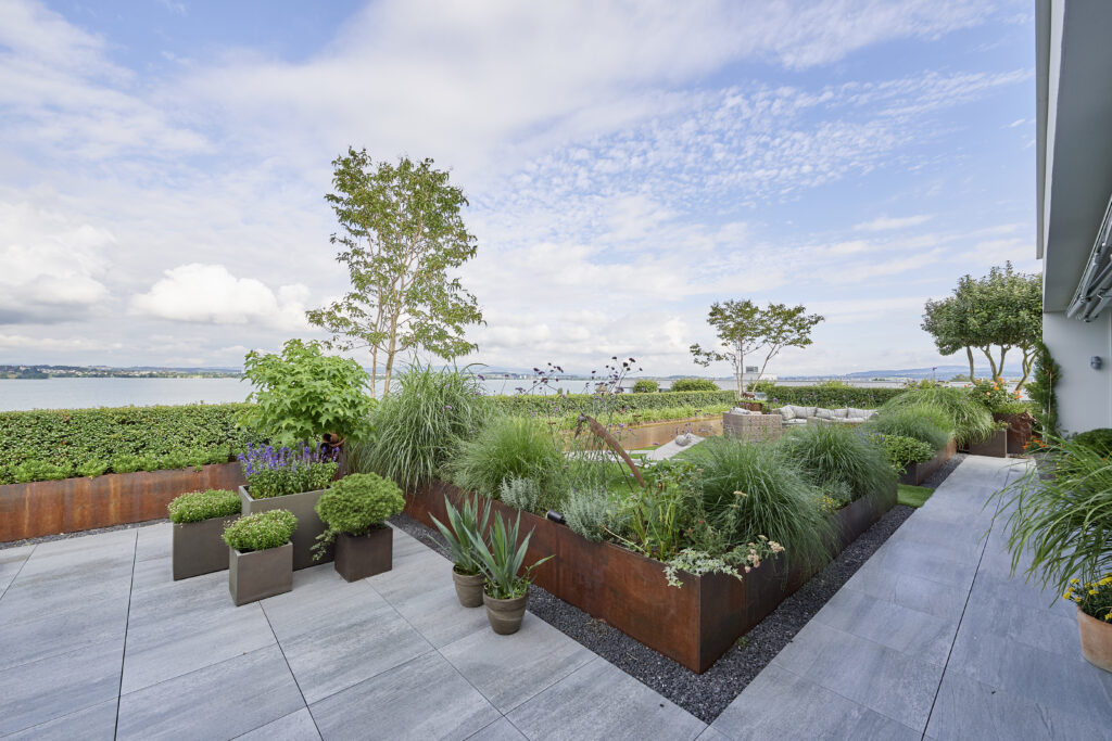Die Wahl der Materialien und der Bepflanzung beleben und unterstreichen die besondere Qualität einer Terrasse.